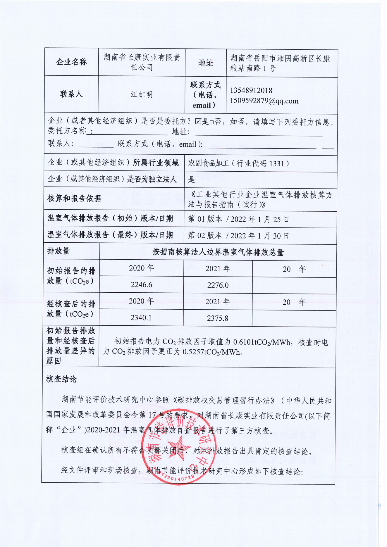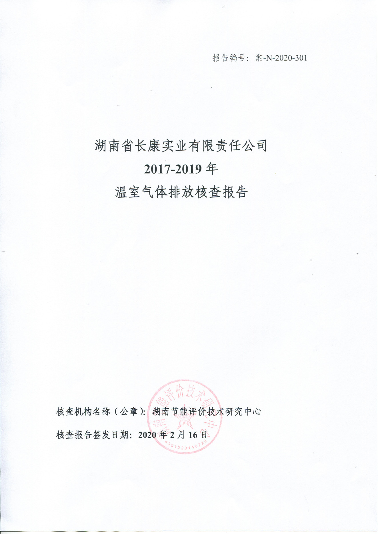 湖南省長康實業(yè)有限責(zé)任公司2017-2021年企業(yè)溫室氣體排放第三方聲明